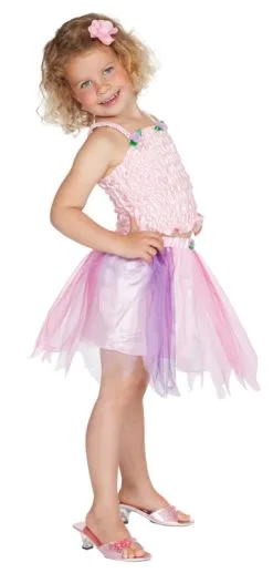 Lief Prinsessen Setje Jalissa met Topje en rokje in roze en paars met roosjes afgezet +