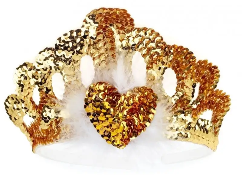 Mooi gouden Kroon met goud glitters en veertjes.