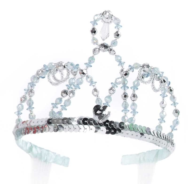 Mooi luxe Prinsessen Kroontje met bling bling steentjes in zilver/blauw, pailletten en lint afwerking zilver. Past erg goed bij een prinsessenjurk, assepoester jurk!