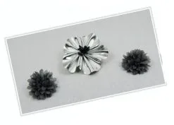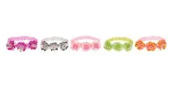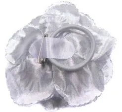 Meisjesschoenen met hakje in lichtroze glitter met twee bloemclips en een bloem broche haarspeld. De bloem broche haarspeld is gemaakt van hetzelfde materiaal in dezelfde kleur als het schoentje en kan zowel in het haar als gespeld op kleding gedragen worden. De bloemclips kunnen op de neus van de schoen gedragen worden. De bloemclips kunnen, vanwege de clip op de achterzijde van de bloem, heel eenvoudig aan de schoen bevestigd worden.