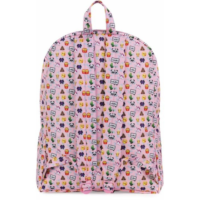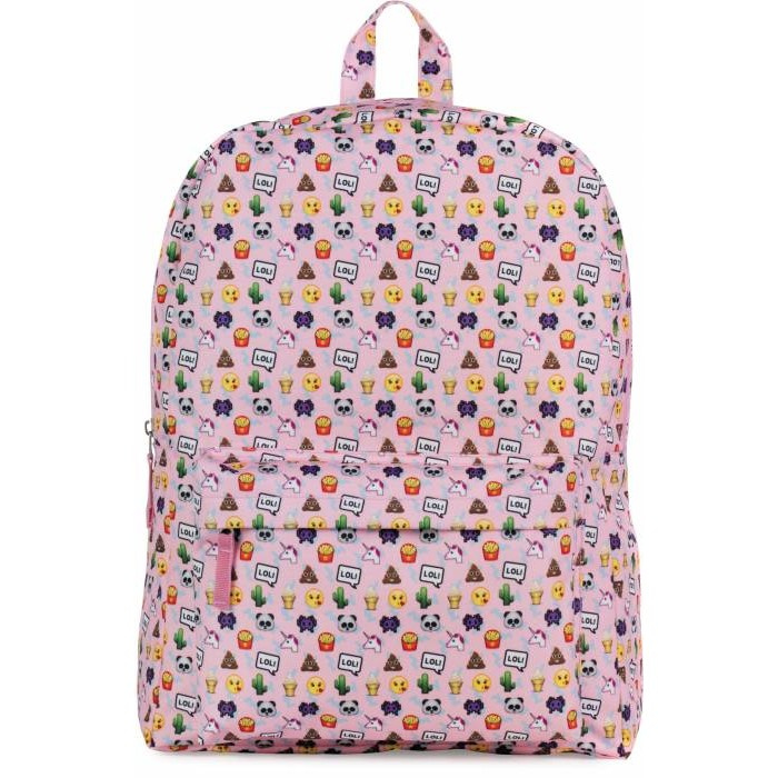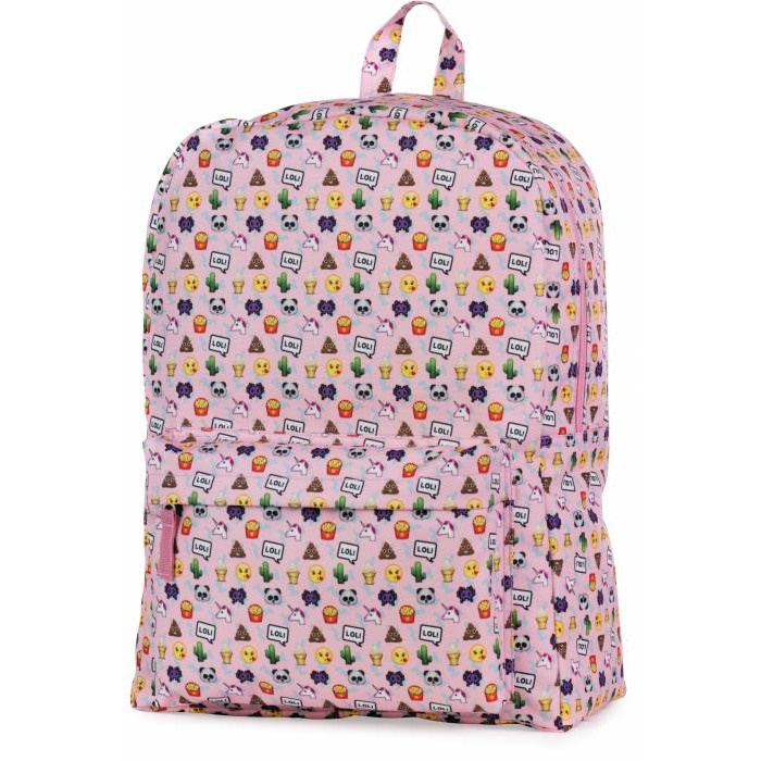 Mooie ruime rugtas voor mee naar school met handig voorvak en groot hoofdvak, met grappige emoticons!