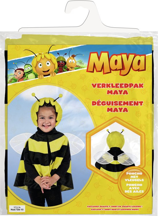 Lieve Maya de Bij verkleedcape met vleugels die vast zitten aan de poncho / cape.
